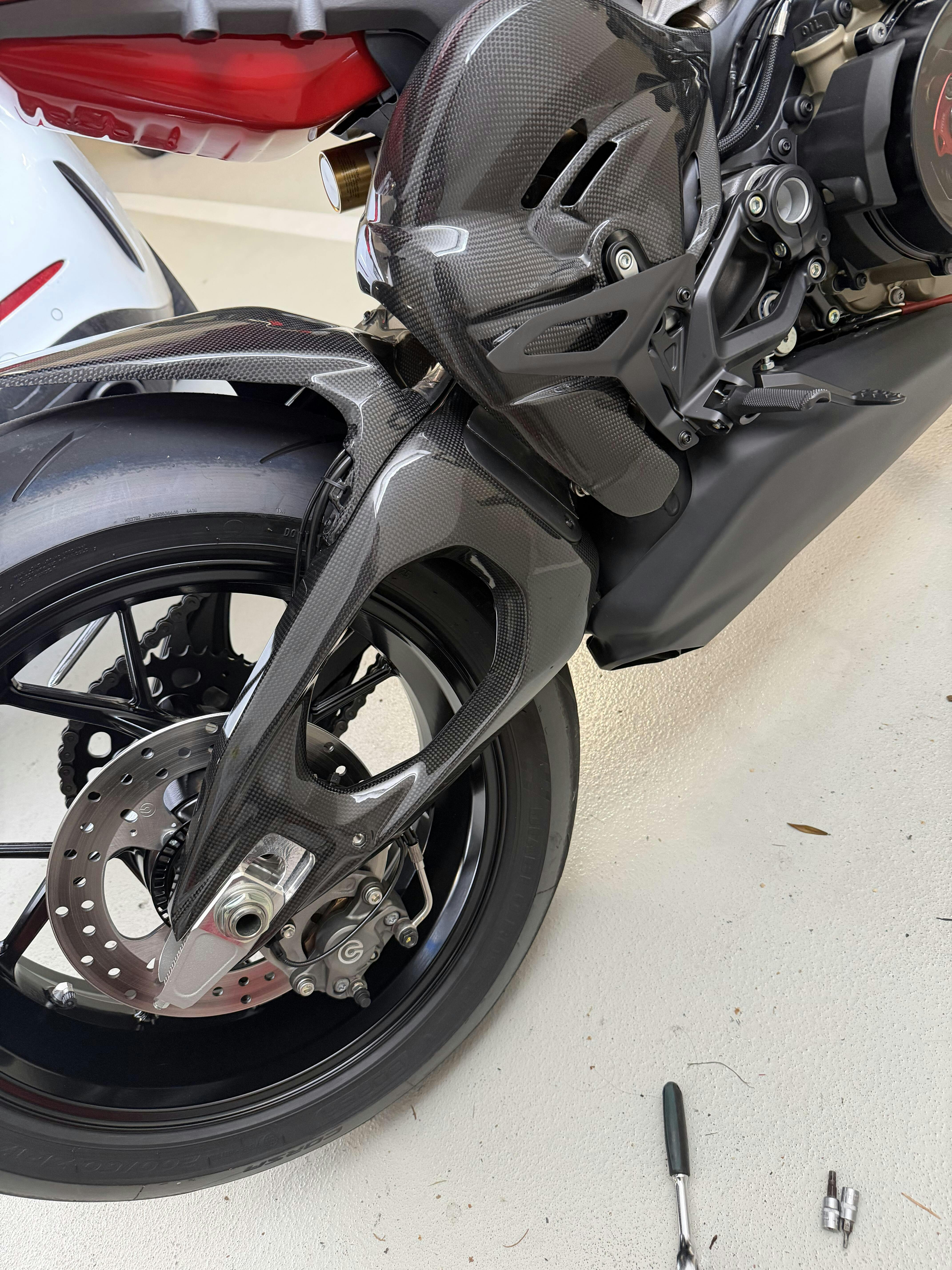 The SWINGARM COVER for DUCATI V4/S is a carbon fiber component that is placed onto the OEM swingarm and enhances both the visual appearance and performance of your motorcycle. See below for which materials and surface treatments are available.